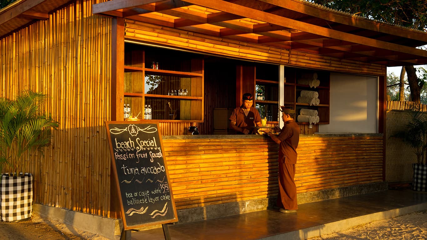 less than 400 metres from our resort you will find our private beach club, sun chairs, umbrellas, warm seas, gentle breezes, snacks and cocktails. feel the stress evaporate as the equatorial sun caresses your skin and whispers the good news in your ear that you have arrived at your own slice of paradise.